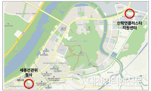 | ▲ 산학연클러스터지원센터, 선관위 청사 위치도(사진-행복청) |