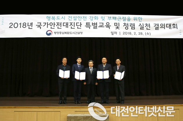 행정중심복합도시건설청(청장 이원재, 이하 행복청)은 행정중심복합 도시(이하 행복도시) 건설에 참여하고 있는 관계자들을 대상으로 청렴하고 안전한 건설현장을 만들기 위한 `청렴실천 결의 대회´를 개최 하고 `청렴․안전 특별교육´을 실시했다고 28일(수) 밝혔다.