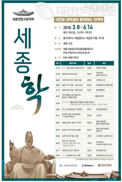세종시인재육성평생교육진흥원, 세종연합교양대학 “세종학” 개강