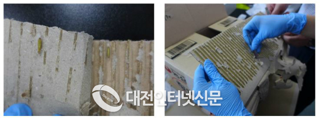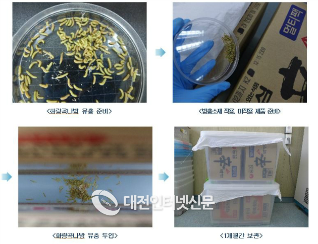 ▲ 화랑곡나방 유충 200마리 투입 후 보관(30회 반복)(사진-식약처)
