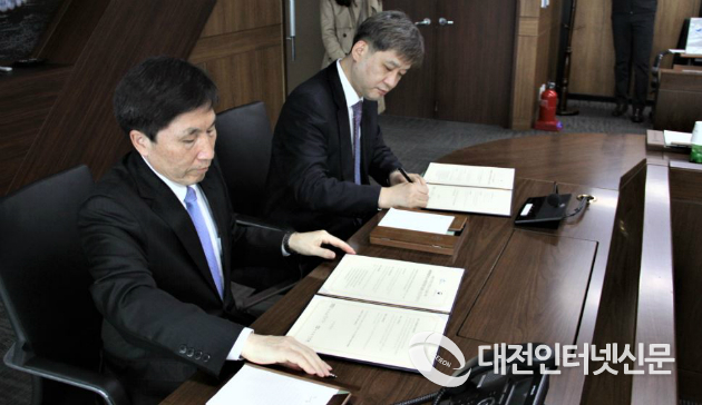 세종시 장만희 시민안전국장과 서장원 대전지방기상청장이 업무협약서에 서명하고 있다. [사진-대전인터넷신문]