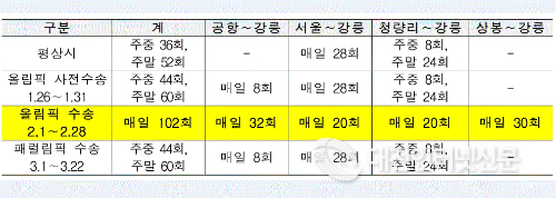 코레일은 올림픽 개막 전인 1월 26일 사전수송 기간부터 패럴림픽 수송지원이 끝나는 3월 22일까지 56일 동안 `올림픽 철도수송대책본부´를 운영한다.