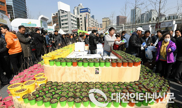 산림청은 이날 소나무, 꽃나무, 유실수 등 2만여 본을 1인당 4본씩 행사장을 찾은 시민들에게 나눠줬다.<사진=산림청 제공>
