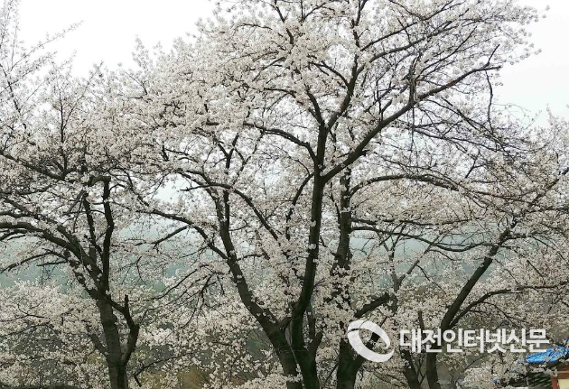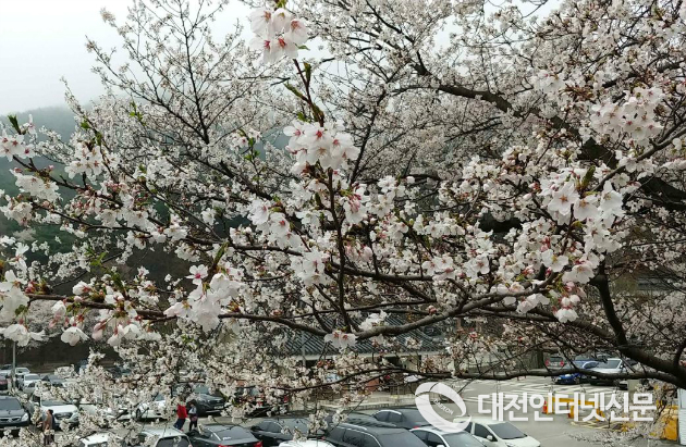 대전․세종․충남을 대표하는 계룡산 동학사에 벚꽃이 만개하여 진입로에 식재된 벚꽃이 흐드러지게 피어 눈꽃송이처럼 흩날렸다.
