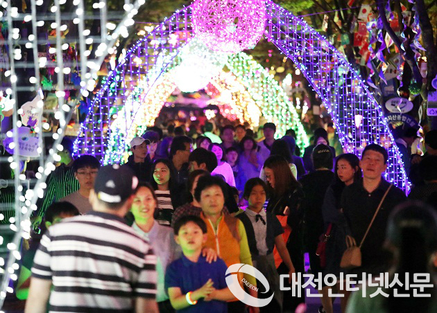 ▲ 수백만 개의 LED 조명`아트 빛 터널´20일 화려한 빛의 조명의 모습(사진-대전서구청)