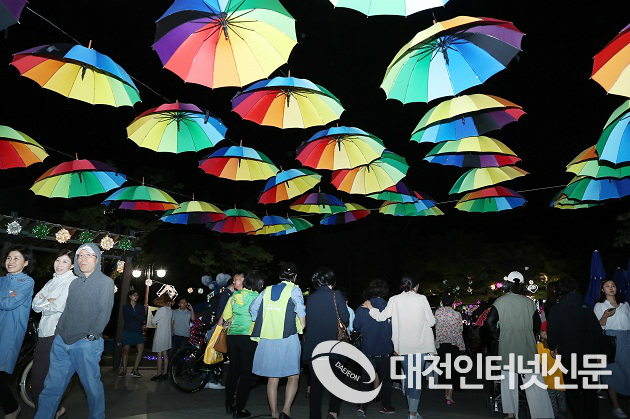대전 서구(구청장 장종태)가 내달 25일 개막하는 `2018 대전 서구힐링 아트페스티벌´을 밝혀줄 `아트 빛 터널´을 서구청 앞 보라매공원에 조성하고, 20일부터 불을 밝힌다.