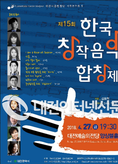대전시립합창단은 오는 27일 오후 7시 30분, 대전예술의전당 앙상블홀에서 제15회 한국창작음악합창제를 개최한다.