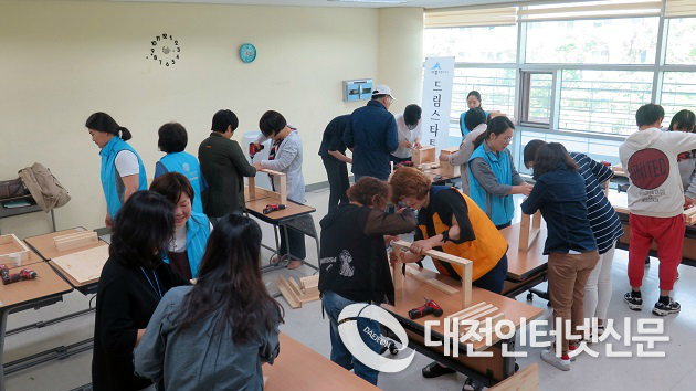 아름동 복컴 2층 드림스타트 프로그램실에서 전문 강사의 지도 아래 직접 목재가구(탁자, 수납박스)를 만들어 보고, 완성품은 참여자에게 제공됐다.