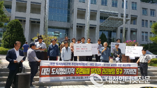 대전 도시정비지역 주민피해 방지와 권리보장 요구을 위한 기자회견이 28일 대전시청 북문앞에서 열렸다.