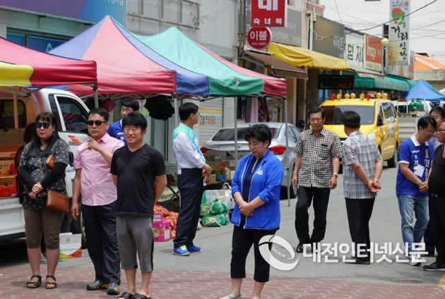 부강면 5일장에 울려 퍼진 “이춘희, 채평석”