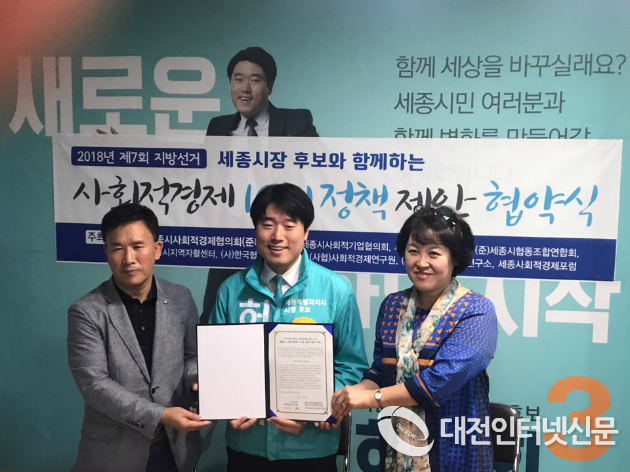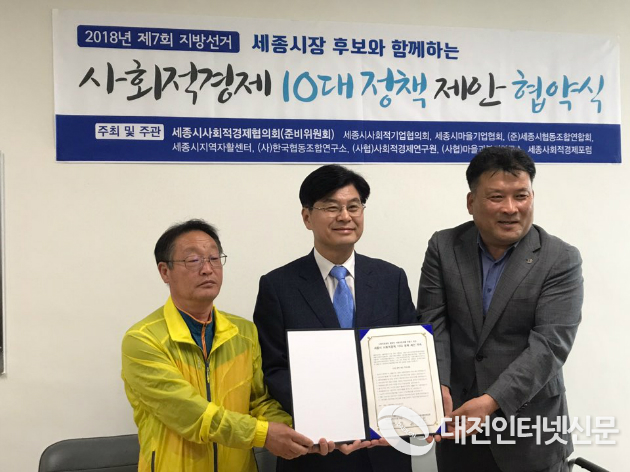 지난 5월, 세종시사회적경제협의회(준)은 3개월간의 준비를 통해 세종사회적경제 10대 공약안을 마련하고, 시장후보에게는 협약식을 시의원 후보들에게는 의견제출을 요구하여 그 결과 더불어민주당 이춘희 시장후보와 5월 21일 14시 협약식을 진행하였으며, 바른미래당 허철회 시장후보는 5월 23일 11시 협약식을 진행했다.