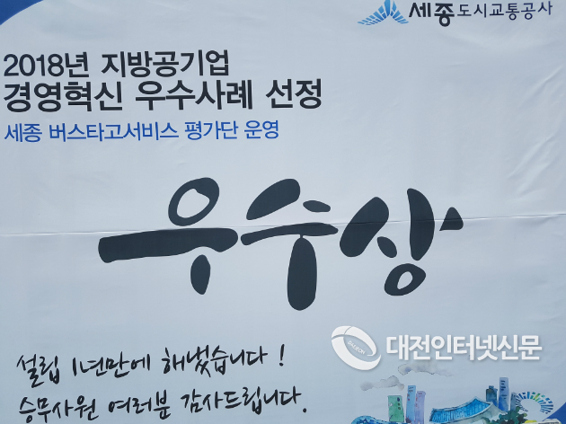 출범 1년만에 2018년 지방공기업 경영혁신 우수사례로 선정된 세종도시교통공사. [사진-대전인터넷신문]