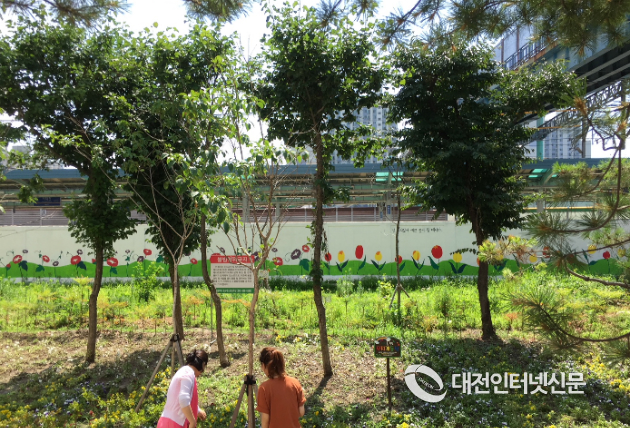 여름꽃을 심은 서대전철로 담벽과 오류동 보도육교는 지난 5월 중부경찰서와 KT&G 상상유니브 등 11개 기관이 함께 셉테드(범죄예방 환경디자인)사업으로 벽화그리기 사업을 추진한 곳으로 이번 꽃 식재로 화사하게 단장을 마쳤다.