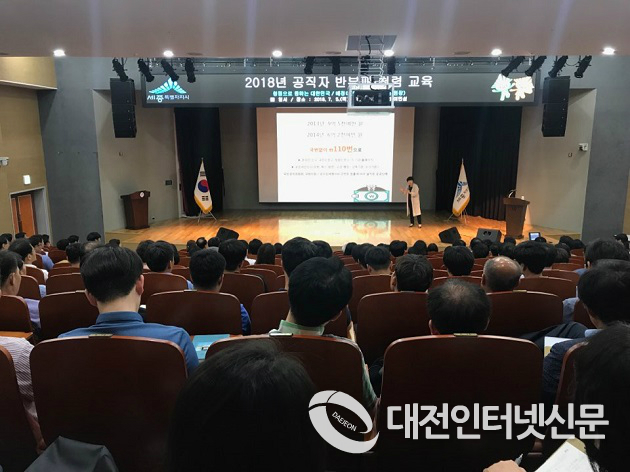 세종시(시장 이춘희)는 5일 시청 여민실에서 공직사회 청렴문화 확산을 위해 전 직원 대상으로 `2018년 공직자 청렴교육´을 실시했다