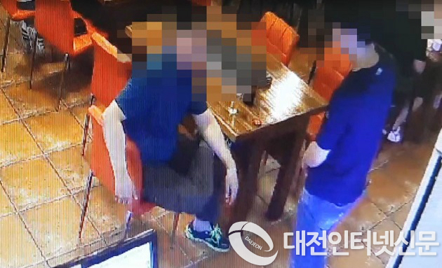 | ▲피의자A씨가 직원을 불러 자기가 00파조직원 일원이라며 협박을 하고있다(영상-대전청) |