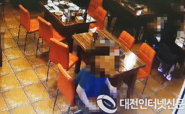 ▲식당 바닦에 침을 뱉는등의 욕설과 협박을 하고 있다(영상-대전청)