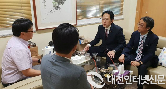 대한의사협회(이하 의협) 최대집 회장과 강석태 강원도의사회장, 신형직 강릉시의사회장이 20일 강릉 의료기관 망치 테러 사건의 피해자인 정신건강의학과 전문의 임 모 회원을 위로 방문했다.