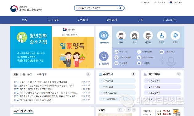 | ▲ 대전고용노동청 홈페이지 캡쳐 |