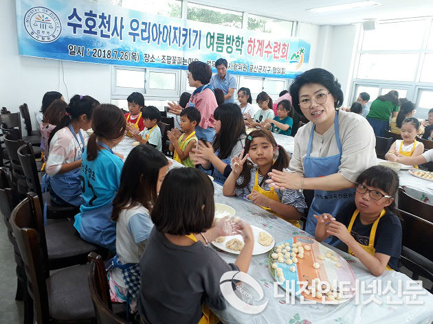 지난 7월26일(목) 제원면 길곡면에 위치한 조팝꽃 피는 마을에서 법사랑위원 금산군지구협의회(회장김성경)의 주최 최미숙(자녀안심위원장)의 주관으로 방학을 맞은 결연청소년 (40명)을 대상으로 찹쌀 도너츠 만들기와 시원한 물놀이 체험을 진행하였다.