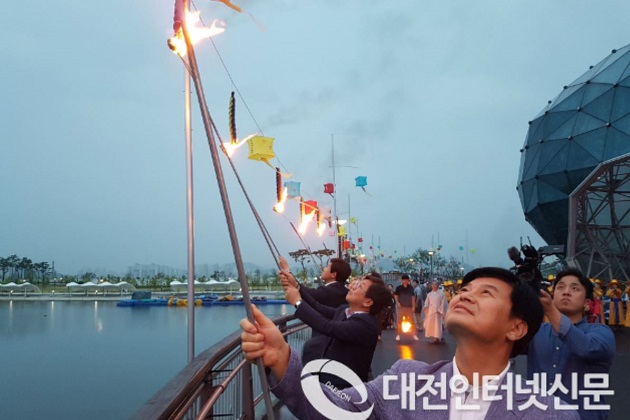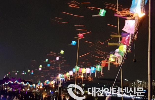 | 삿된 기운과 부정한 기운을 정화한다는 불이 낙화로 표현되어 호수공원일원에 흩날리고 있다. [사진-대전인터넷신문] |