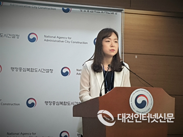 행정중심복합도시건설청 한경희 도시계획국 도시 특화 팀장이 13일 행복도시 중앙공원 2단계 조정안에 대해 설명하고 있다. [사진-대전인터넷신문]