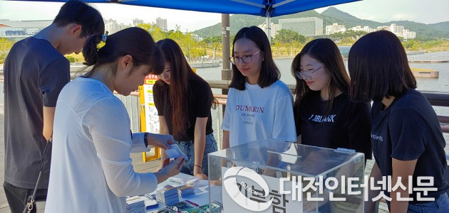 | ▲양지고 학생들이 위안부 문제 해결 기금 마련을 위한 행사를 실시했다. 사진은 지난 12일 세종호수공원 무대섬 일대에서 학생들이 시민들과 행사를 진행하고 있는 장면 (사진제공-세종시교육청) |