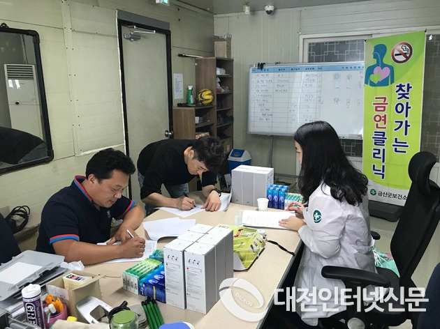 금산군보건소는 시간을 할애할 수 없는 직장인들에게 금연의 기회를 제공하기 위해 사업장을 직접 방문해 6개월간 1:1 개인별 맞춤 건강서비스인 이동금연클리닉을 실시하고 있다