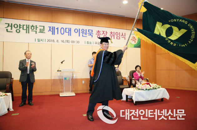 건양대학교 제10대 이원묵 총장 취임식이 16일 오전 건양대 논산 창의융합캠퍼스 명곡정보관 6층 무궁화장홀에서 열렸다.