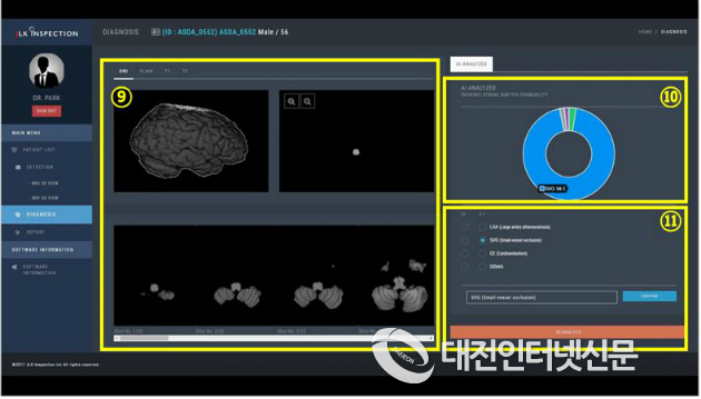 임상시험을 통해 제품 성능(일치도)을 평가한 결과 의사들이 진단한 뇌경색 유형 일치율(54%)과 비교했을 때 비슷한 수준(58.3%)이었다.