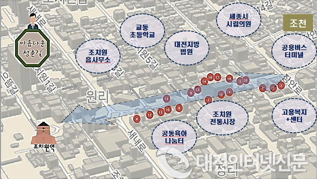특히 이번 공모과정에서 조치원로는 청춘조치원프로젝트를 통해 전선지중화, 보행환경 개선, 노후 보도블럭 및 배수로 교체 사업을 주민주도로 추진·완료한 점에서 높은 평가를 받았다.