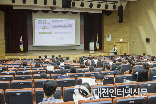 | ▲ 22일 세종시교육청 2층 대강당에서 진행한 「2018학년도 2학기 캠퍼스형 공동교육과정 강좌 설명회」장면(사진-세종시교육청 제공)
