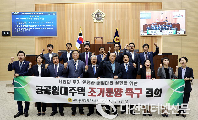 세종시의회(의장 서금택)는 8월 28일 제51회 제1차 정례회 제1차 본회의에서 `10년 공공임대주택 조기분양 및 적정 분양가격 산정 촉구 결의안´을 채택했다.