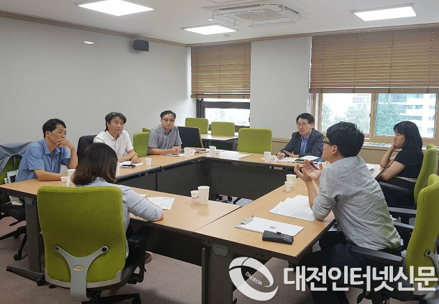 | ▲28일 유성구청 소회의실에서 열린 마을공동체 지원 확대를 위한 민‧관실무회의에서 마을공동체 활성화 위원들과 구청 실무자들이 지역공동체지원센터 설립 포럼운영 방안에 대해 논의하고 있다. |