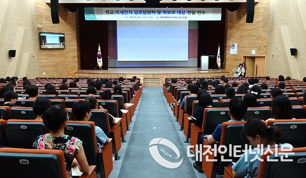 | ▲ 세종시교육청이 학교 현장의 고농도 미세먼지 대응을 위해 올 9월까지 관내 모든 학교에 공기정화장치 설치를 완료할 계획이다. 사진은 29일 세종시교육청 대강당에서 진행한 미세먼지 업무담당자 및 학부모 대상 연수 장면(사진제공-세종시교육청)