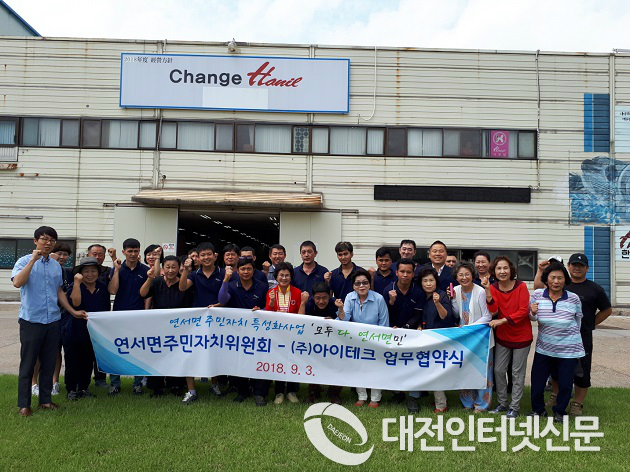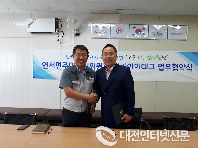 세종특별자치시 연서면 주민자치위원회(위원장 신원호)가 3일 ㈜아이테크(대표 박시범)와 업무협약을 맺고, 더불어 함께 사는 연서면 구현을 위한 `다, 연서 사업´의 본격적인 추진에 나섰다.
