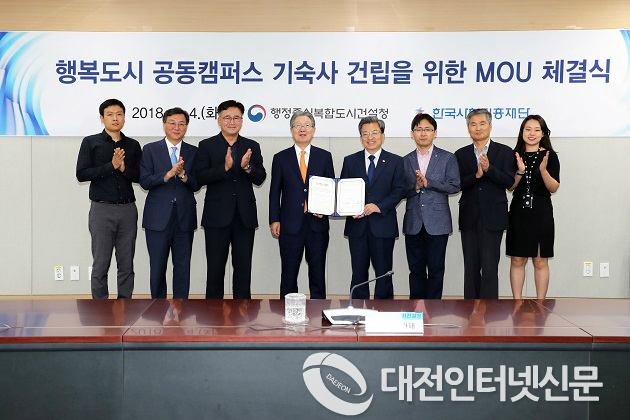 이를 위해 행복청과 한국사학진흥재단은 9월 4일(화) 14시에 행복청에서 공동캠퍼스 기숙사 건립 추진을 위한 양해각서(MOU)를 체결했다고 밝혔다.