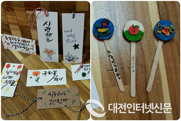 ▲ 나래초가 지난 17일부터 21일까지 5일간 전교생 1,285명을 대상으로 독서의 계절 가을을 맞아 학생들의 독서활동을 촉진하기 위해 ⌜도서관 나들이⌟ 행사를 운영했다. 사진은 지난 20일 진행한 프로그램에 참여하는 학생들과 학생들이 만든 `내가 만드는 책갈피´ 작품 사진(사진제공-세종시교육청)