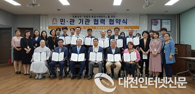 공주시 옥룡동(주진영 동장)이 지난 20일 행정복지센터 회의실에서 옥룡권역 맞춤형 통합사례관리를 위한 민·관 기관 협력 협약식을 개최했다고 밝혔다.