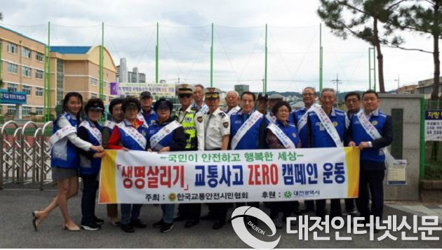 사단법인 한국교통안전시민협회(이사장 이래희)와 대전대덕구지회(지회장임덕순)외 회원는 대전화정초등학교앞에서 9월28일13:30 대덕경찰서.대덕구청교통과.모법운전자.녹색어머니회.안실련 등 민.관합동으로 교통사고 "사망자 ZERO"교통안전 캠페인을 실시하였다.