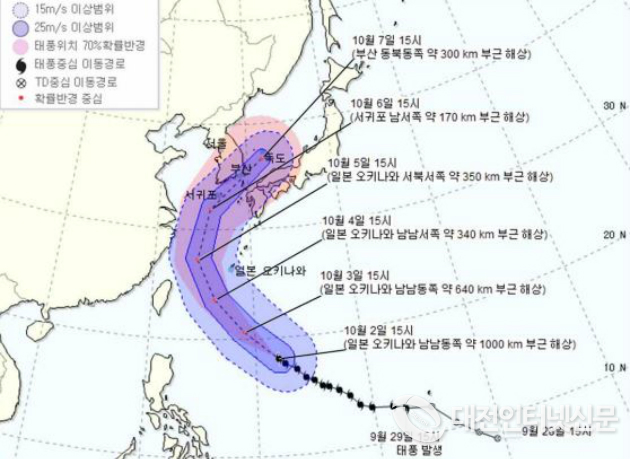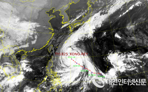 제25호 태풍 `콩레이(KONG-REY)´ 예상경로-10월2일 16시 발표 태풍정 보. [기상청 제공]