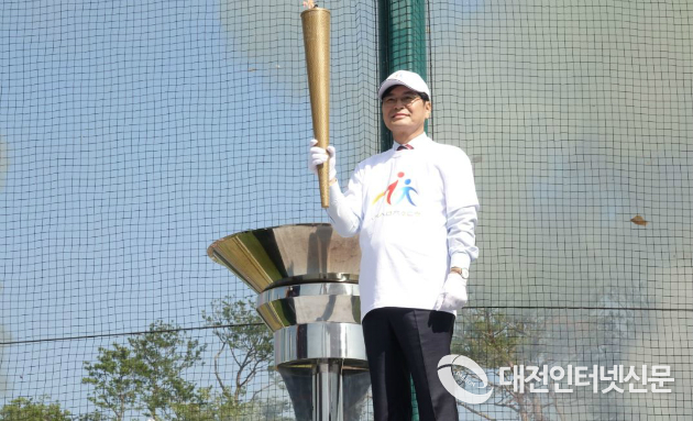| ▲ 제7회 세종시민체육대회를 알리는 성화 체화를 하는 이춘희 세종특별자치시장. [사진-대전인터넷신문] |