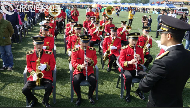 | ▲관내 향토사단인 32사단 군악대가 체육대회를 축하하는 식전 공연을... [사진-대전인터넷신문] |