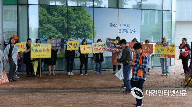 세종특별자치시 관내 성남고와 어진중 학부모 20여명이 5일 세종시교육청에서 학교인근에 건설될 고층아파트와 주상복합의 허가를 반대하는 기자회견을 개최하였다.