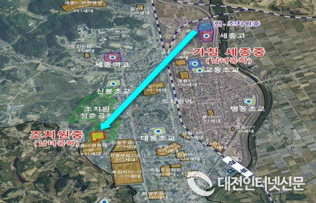 [기사/사진-대전인터넷신문 최대열 기자] 조치원중학교와 조치원여중이 남녀공학으로 통합되고 신흥리로 21년 3월 이전한다.