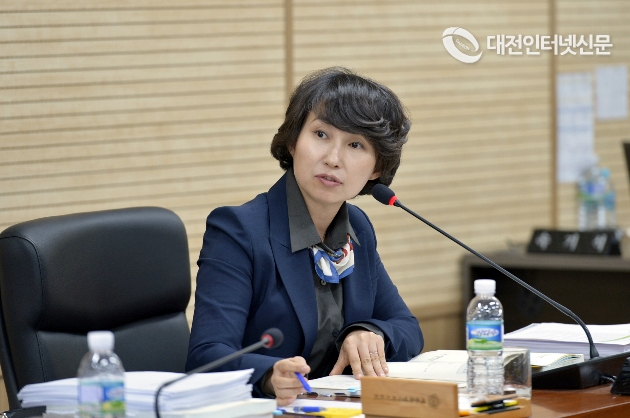 세종시의회 행정복지위원회 제1차회의가 열린 18일 이윤희 의원이 희망도서 바로대출서비스를 공평하게 이용할 수 있도록 수거 방식의 개선을 집행부에 촉구하고 있다. [사진-세종시의회]