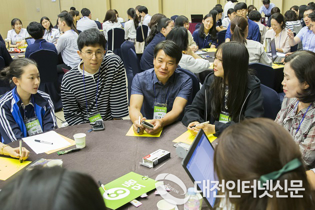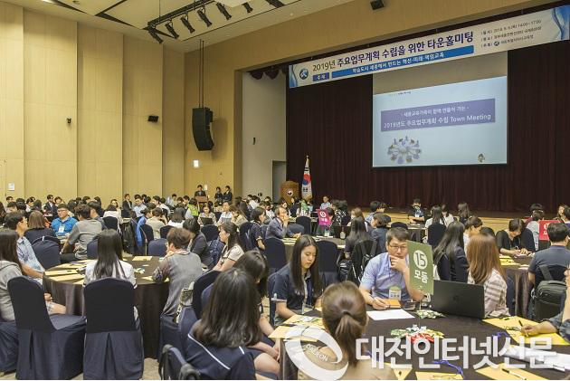 ▲ 세종시교육청이 혁신 2기를 맞아 그동안 교육부나 교육청에서 정책을 학교에 내려주고 관리하던 하향식 정책 추진방식에서 벗어나 유·초·중등교육을 책임지고 학교자치를 지원하는 교육청으로 전환하기 위해 전면적인 혁신을 추진하기로 했다. 사진은 지난 9월 세종시교육청이 개최한 `세종 교육공동체 타운홀미팅´ (사진제공-세종시교육청)