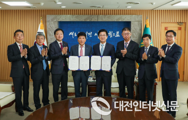 | ▲ 대전시는 5일 대전시청에서 하나금융그룹과 국공립어린이집 확충 지원을 위한 협약을 체결했다. [사진-대전시청] |