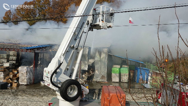 특히 미로 같은 창고 내부구조로 살수에 애를 먹던 소방대원들은 절단기를 이용 외부 구조물을 절단하며 진입을 시도하였고 특히 세종소방본부의 굴절사다리차의 활약으로 소방대원의 살수 사각지대를 살수하면서 화재를 진압하는 광경은 모인 주민들로 하여금 칭송을 받기도 하였다.