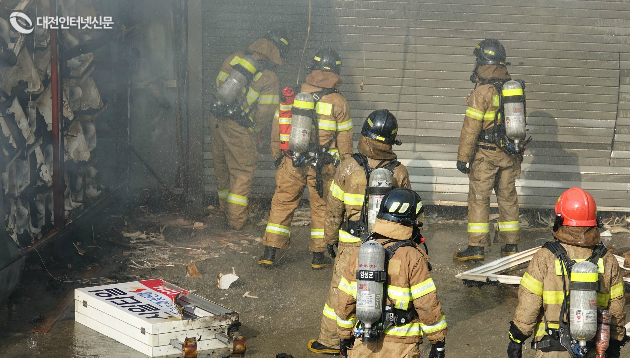 | 내부로 진입을 시도하는 소방대원들 [사진-대전인터넷신문/최 대열 기자] |