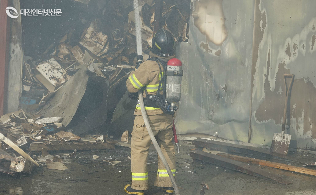 화재를 진압하는 세종소방본부 대원... [사진-대전인터넷신문/최 대열 기자]